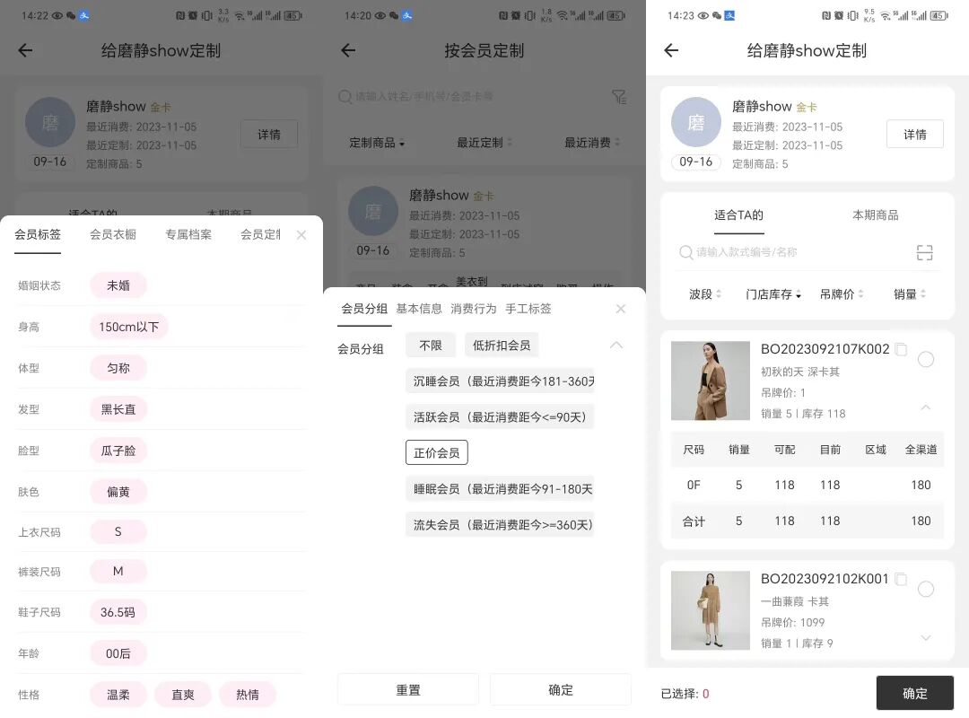 “配装”功能的亮点之一是将商品库存与会员信息打通,实现符合会员风格且有库存的商品匹配,从而大幅提高商品的流通率。