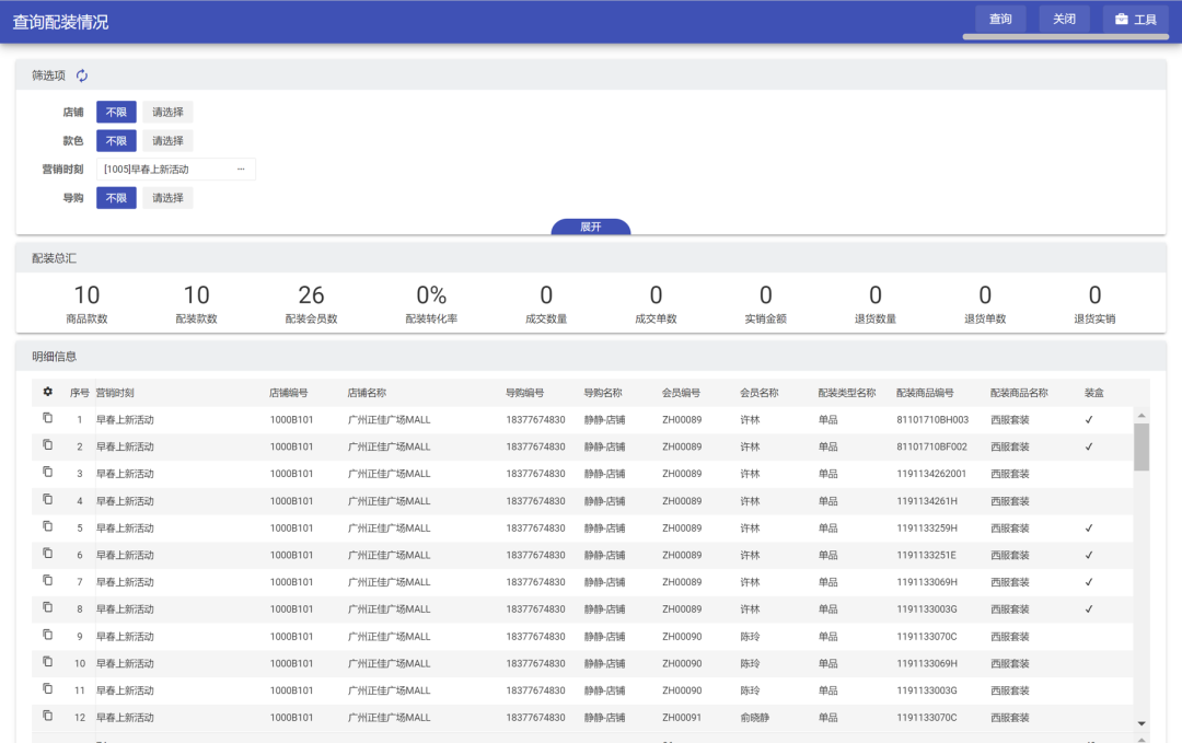 总部可以在PC端后台,看到每个导购的配装数据和情况,检测每一个营销时刻,导购配装任务的完成情况,以及顾客的打开情况,获取一手数据,并继续优化推荐模型。