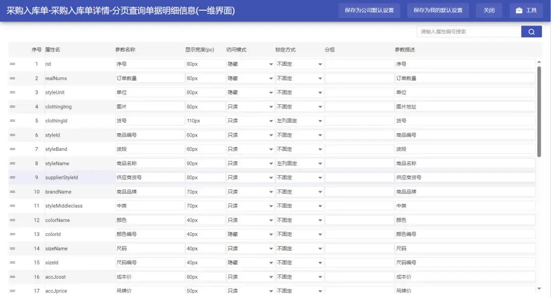 每一张单据自定义显示字段