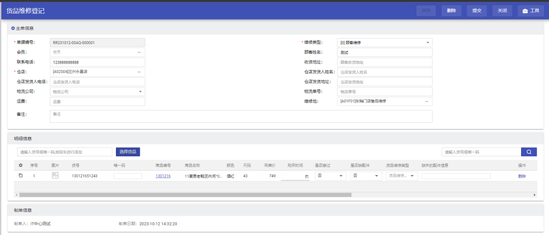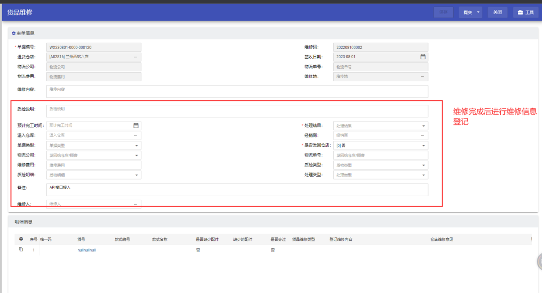 货品维修明细